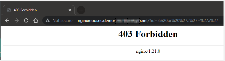 Jika ModSecurity berfungsi dengan baik, server web Nginx Anda akan menampilkan pesan kesalahan 403 Forbidden.